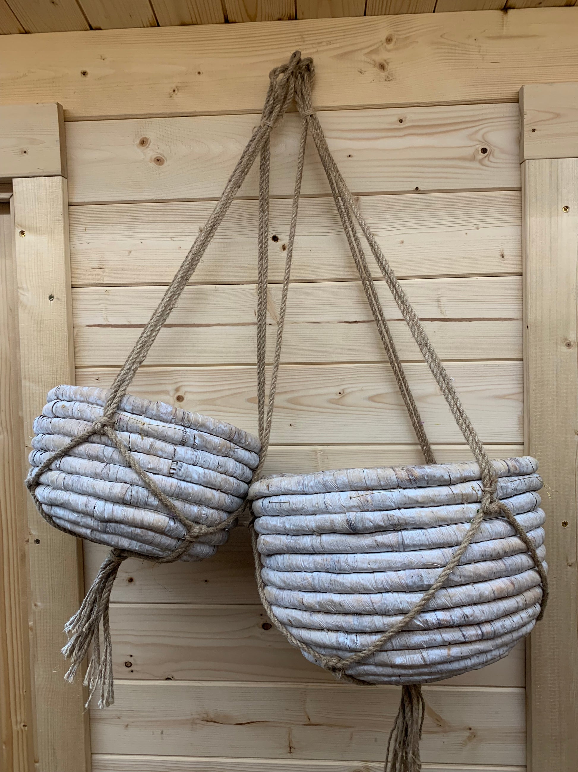 Sturdy large baskets ideal for large indoor trailing plant. Made with natural material and lined with plastic.